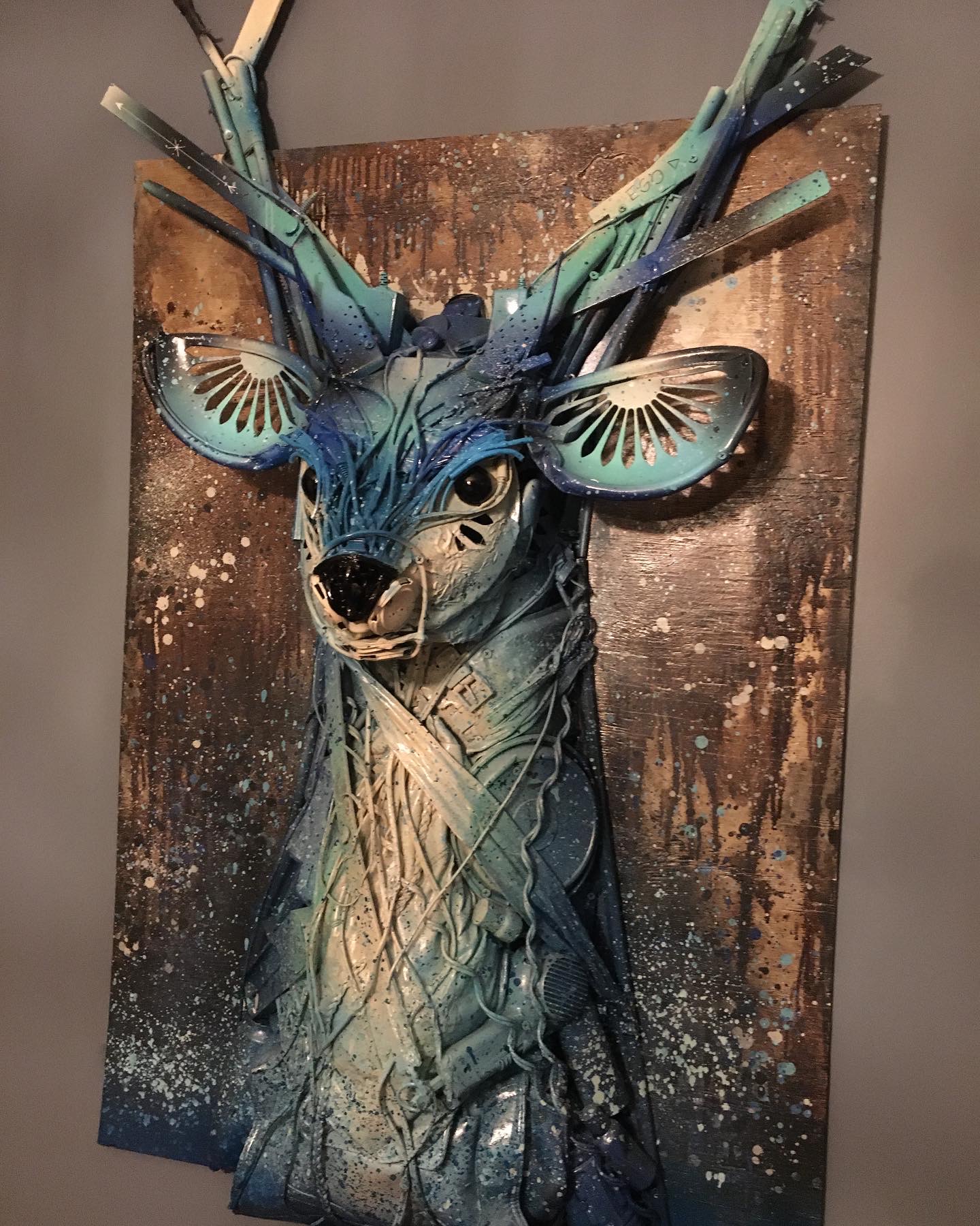 La primera pieza de Daigle fue un ciervo azul al que llamó Yondu, que completó en julio de 2017. Desde entonces, ha estado creando su particular estilo de arte durante casi nueve años. Ella admite que está agradecida y sorprendida por lo lejos que la ha llevado su arte. Aparecer en las noticias locales, la revista People y The Kelly Clarkson Show, e incluso que le ofrecieran un piloto de televisión basado en su trabajo, ha sido toda una experiencia para esta artista estadounidense.