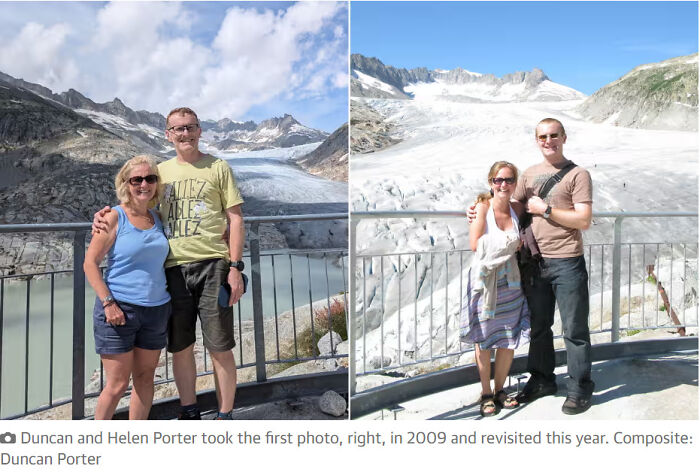 #13 Fotos tomadas con 15 años de diferencia muestran el derretimiento de los glaciares suizos