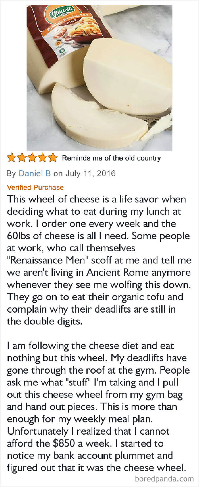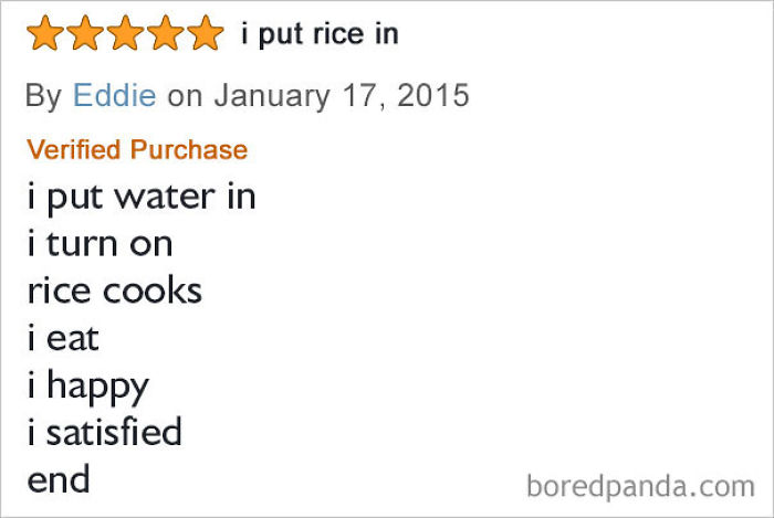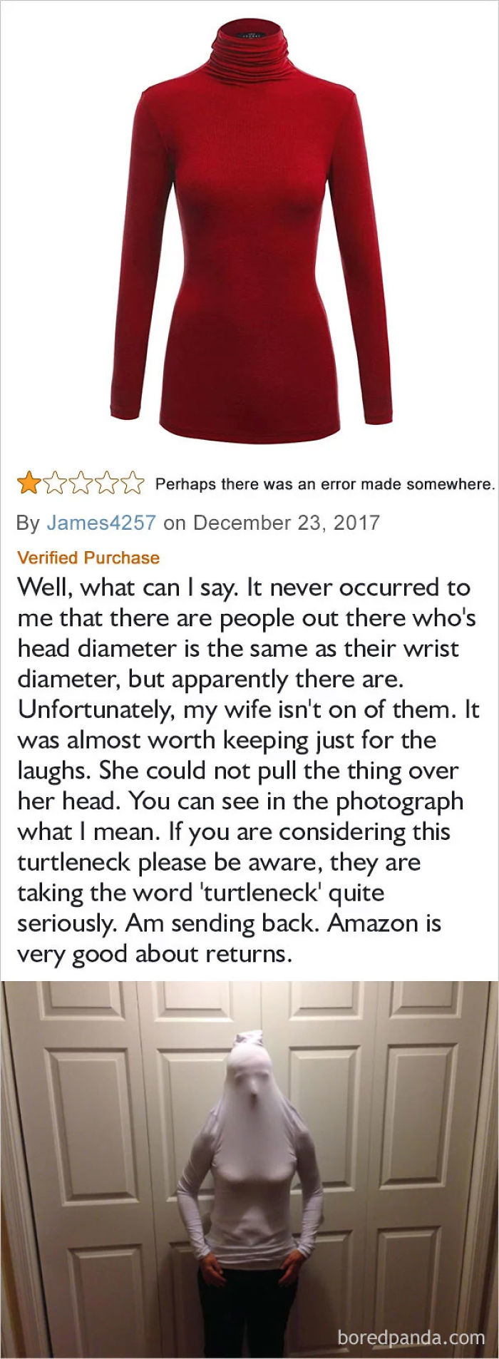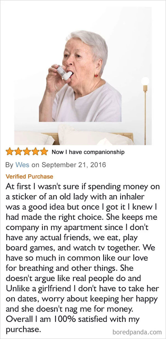 Si estás navegando por Internet en busca de risas pero los memes parecen usados en exceso y los cómics parecen haberse convertido en una copia entre sí, todavía hay algo que podría funcionar. Reseñas de Amazon. Son honestos, ingeniosos y, lo mejor de todo, conscientes de sí mismos. Desde un anciano que acaba de usar un palo para selfies por primera vez hasta una mujer que no puede ponerse su nuevo jersey de cuello alto por la cabeza, no es necesario ser escritor de un programa de entrevistas nocturno para escribir algo divertido. Todo lo que necesitas es un poco de asombro o decepción después de abrir tu tan esperada entrega. ¡Continúe desplazándose y vea algunas de las reseñas de Amazon más divertidas que el sitio tiene para ofrecer!