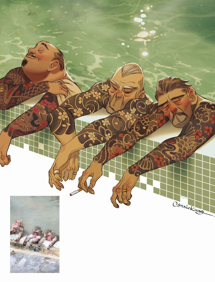 Connie Kang es una ilustradora que transforma rasgos animales en personajes humanos plenamente realizados, inspirándose en las sutiles similitudes entre especies y tipos de personalidad. Influenciada en parte por las divertidas comparaciones del fotógrafo Gerrard Gethings entre las mascotas y sus dueños, comenzó a dibujar personajes que reimaginan a los animales como personas, guiada por lo que ella describe como «forma, lenguaje, color y expresión».