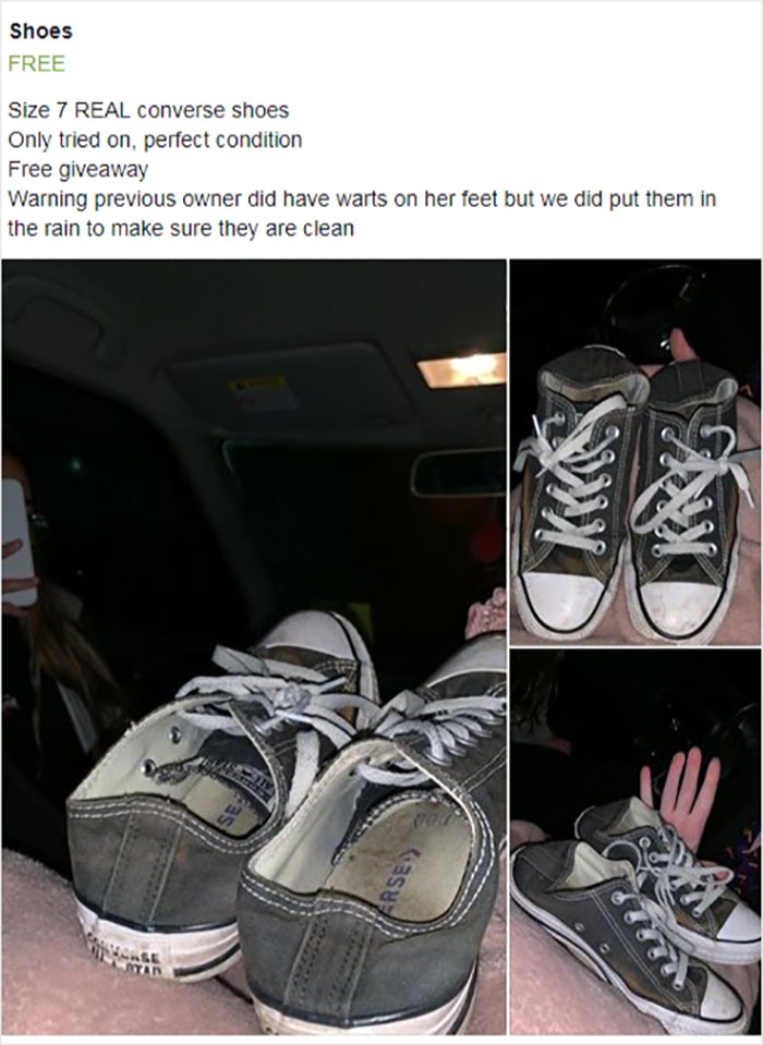En este popular subreddit dedicado a anuncios divertidos de Craigslist, las personas comparten sus peores encuentros con vendedores que querían tanto ganar dinero rápido que probablemente también vendieron su mejor criterio al mejor postor. Desde hallazgos tan interesantes como Cheetos con formas extrañas hasta aire extremadamente raro, todo podría ser tuyo por un precio ridículamente alto. ¿Intrigado? Entonces, si está desesperado por qué comprar, desplácese a continuación para ver la lista completa de anuncios de mercados de Internet completamente delirantes.