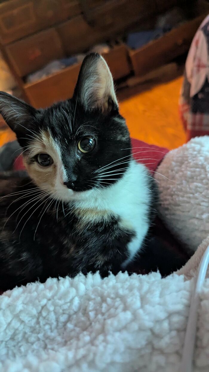 No podía dormir y estaba buscando gatos de SPCA en adopción a las 2 a.m. Envié el enlace a mi novia y ella insistió en que fuéramos a visitarla. Al instante se enamoró de lo tímida y dulce que era y la trajo a casa ese mismo día.