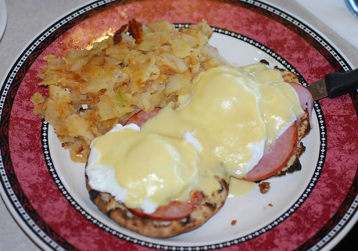 Bruh, hice huevos Benedict en Navidad y me esforcé tanto en conseguir la salsa holandesa que me olvidé por completo de escalfar huevos y serví un panecillo inglés con salsa.