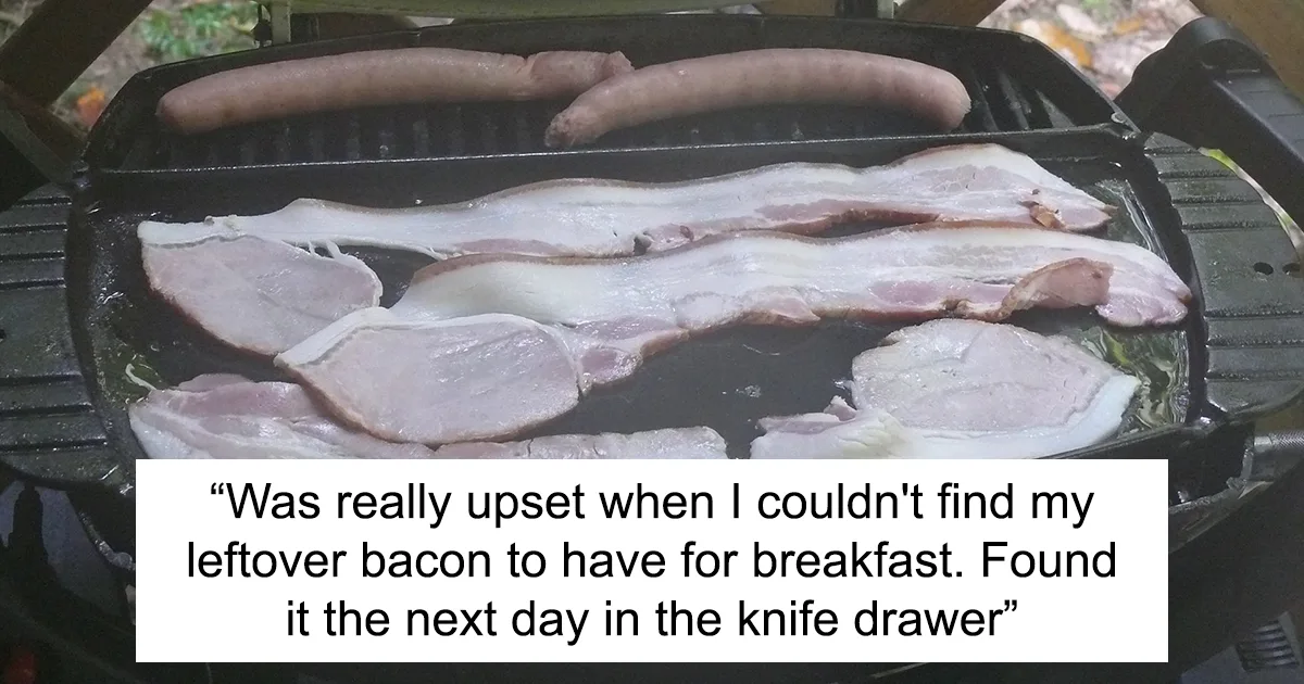 Me enojé mucho cuando no pude encontrar el tocino sobrante para desayunar. Lo encontré al día siguiente en el cajón de los cuchillos.