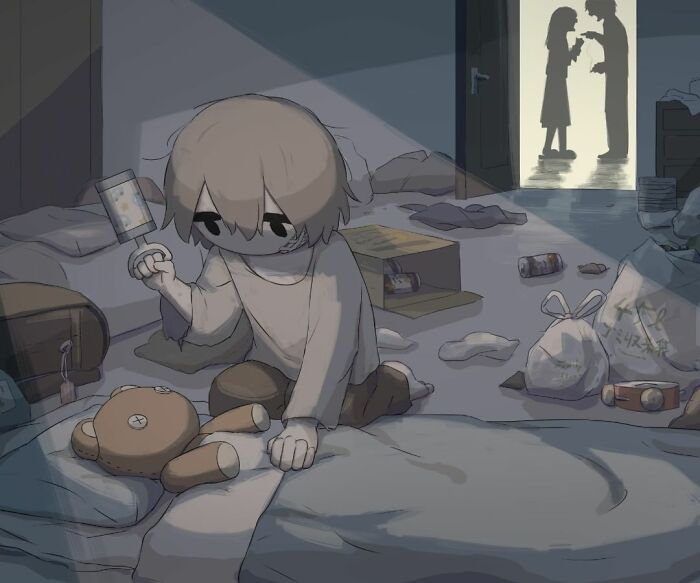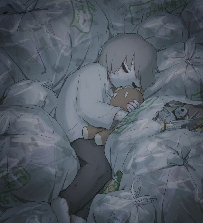 Avogado6 ha estado publicando su arte desde 2017 y ha creado cientos de imágenes que van desde cualquier cosa que provenga de las grietas más profundas del alma hasta piezas raras y conmovedoras, pero cada ilustración nunca deja de evocar emoción. Aborda temas incómodos como la muerte, la pobreza, las luchas familiares a través de los ojos de un niño, el abuso, la tolerancia y la igualdad, el consumo poco saludable de redes sociales, la depresión, la soledad y más. La mayoría de sus obras son poderosas y oscuras, pero encontrarás algunas obras de arte dulces que generalmente presentan animales arrojados aquí y allá para recuperar el aliento.