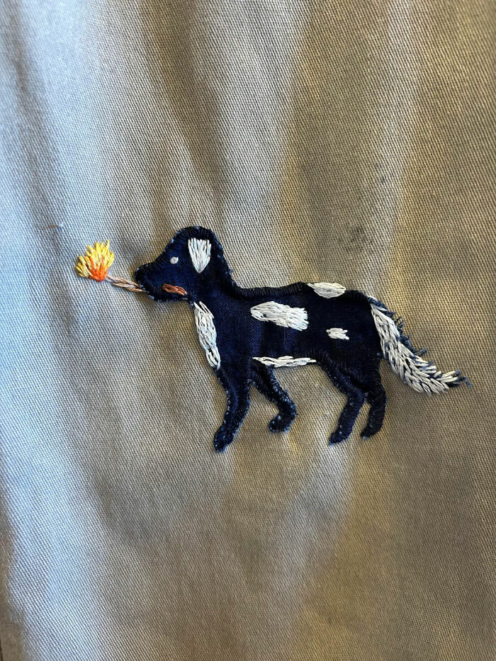 #20 ¡Mi hermano me pidió que le arreglara el agujero de sus jeans, así que lo convertí en un Lil Embroidebuddy!