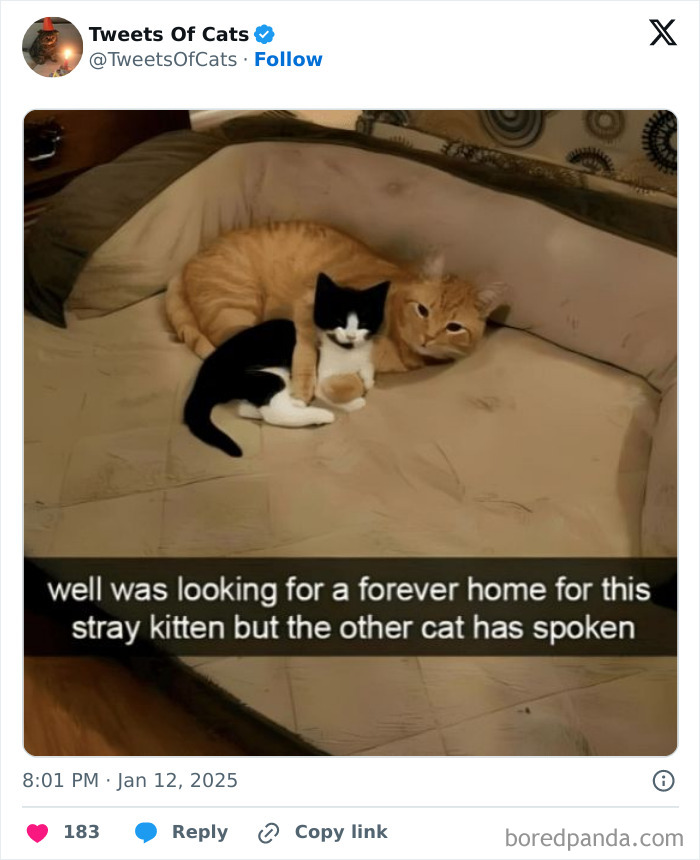 Afortunadamente, hay una página llamada Tweets Of Cats que captura todo esto y más. A continuación, reunimos algunas de sus publicaciones más divertidas, extrañas y adorables dedicadas a estos maravillosos animales. Desplácese hacia abajo para disfrutarlos y tomar su dosis diaria de alivio del estrés.