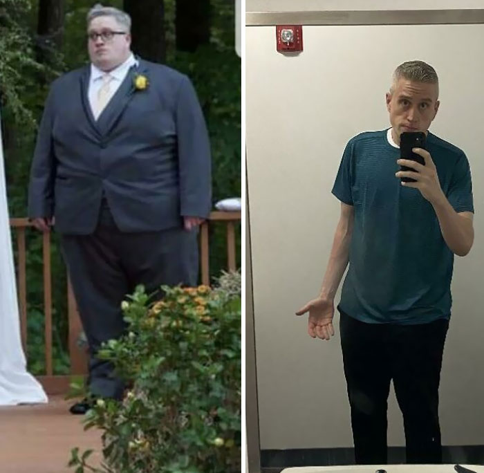 # 2 La foto de la izquierda fue hace exactamente 3 años cuando fui el padrino de boda de mi amigo. Pesaba cerca de 600 libras. Alrededor de 230 libras ahora