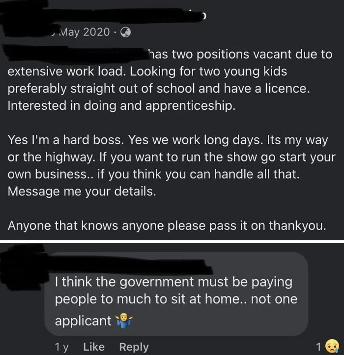 # 25 Mi jefe publicó esta descripción de trabajo en Facebook y luego lo comentó una semana después. Me pregunto por qué nadie se postuló