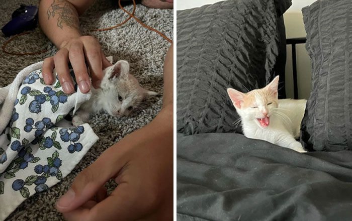 # 35 Mi hermana y su pareja encontraron un gatito en el desierto. El niño expósito ha sido llamado Nieve. Ahora es un gatito muy feliz