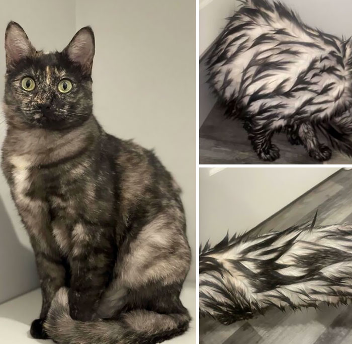 #11 Cómo se ve mi gato normalmente versus cómo se ve mojado (Smoke Tortie)