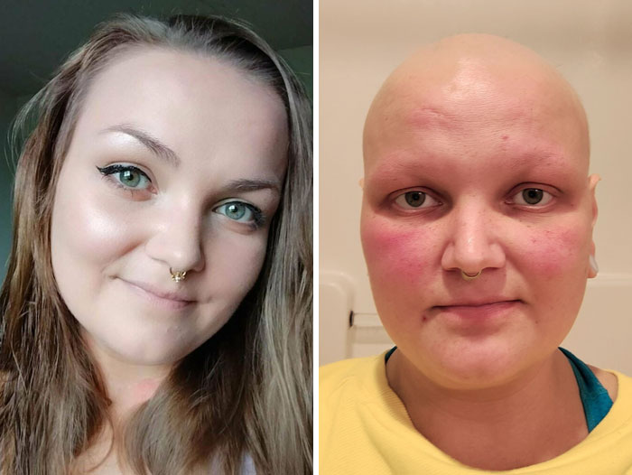 #9 Antes y después de la quimioterapia. Me diagnosticaron en junio
