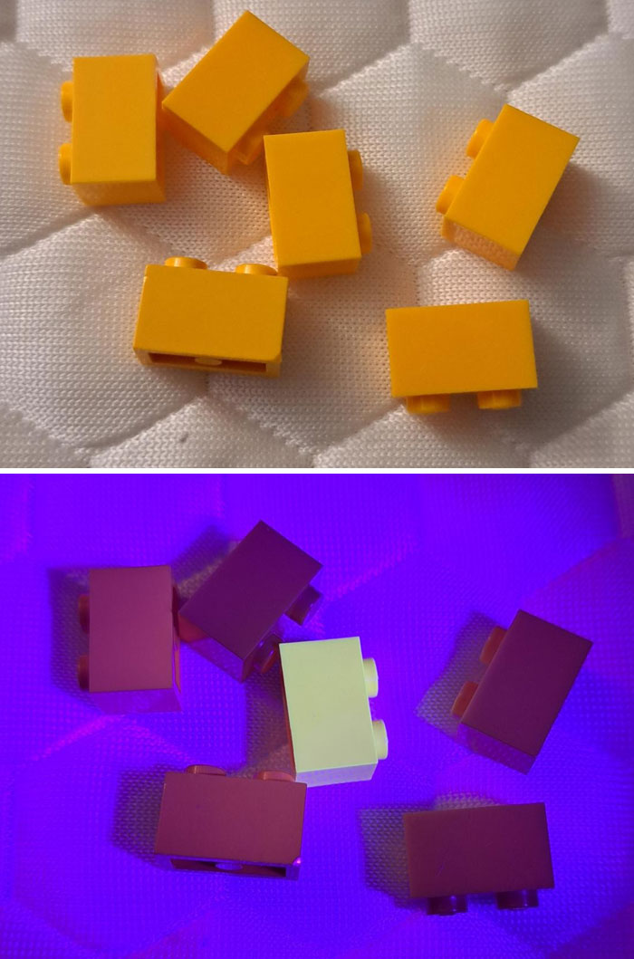 #35 Estos ladrillos LEGO son del mismo color… excepto que están bajo una luz negra