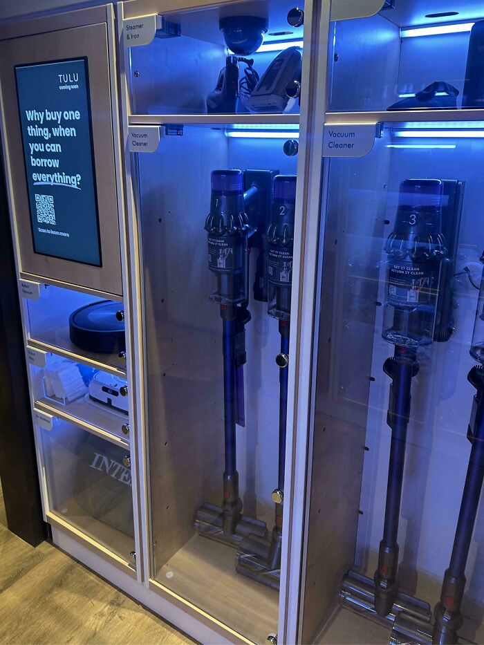 El edificio de apartamentos número 10 tiene una máquina expendedora que le permite alquilar aspiradoras, colchones de aire, impresoras e incluso una Xbox.