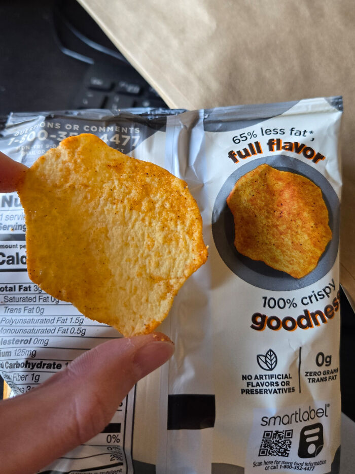 #44 Una papa frita que tiene casi exactamente la misma forma que la imagen del paquete