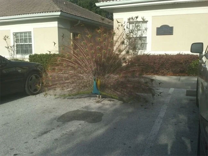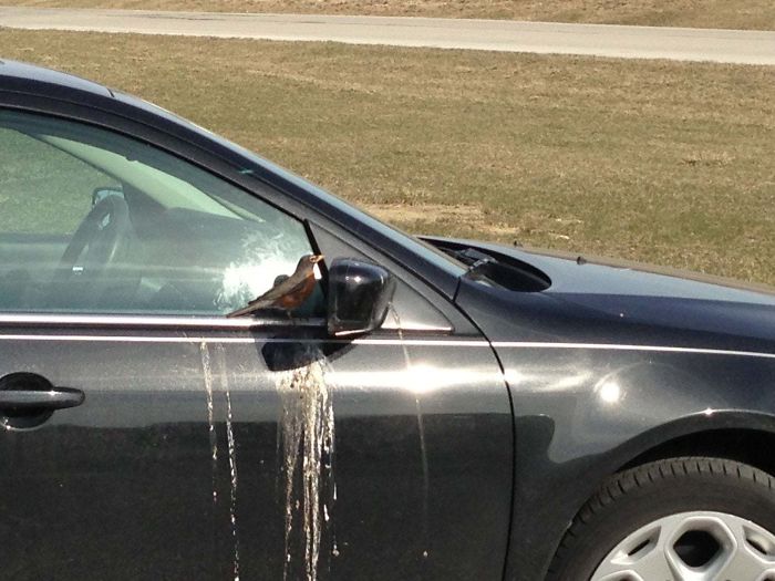 #2 Este pájaro espera que mi compañero de trabajo aparezca todas las mañanas. Luego pasa el día mirándose en el espejo y [pooping]