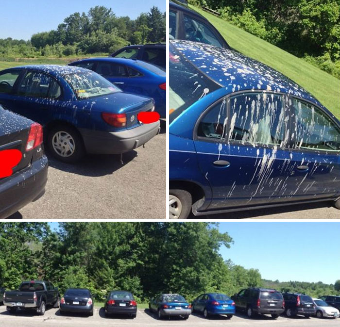 #35 Parece que docenas de pájaros decidieron cagar en un auto en mi trabajo