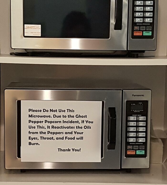 #12 Yesterday, This Guy Put Ghost Pepper Popcorn In Our Industrial Microwave At Work For Over 5 Minutes