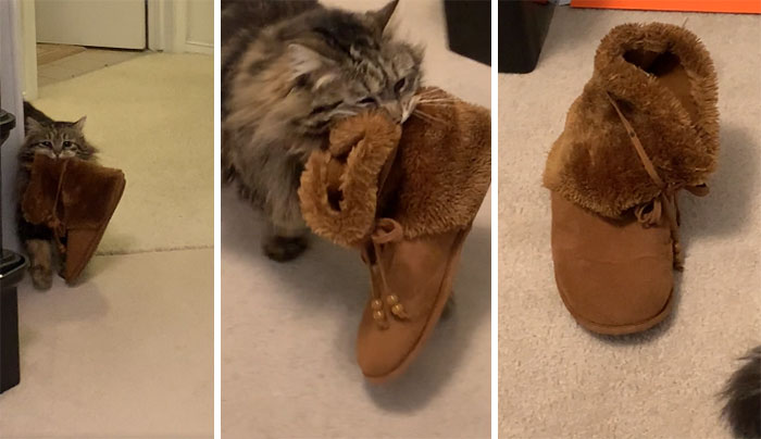 # 10 Mi mamá adoptó un gato que le trae sus pantuflas todas las mañanas. No le creí hasta que finalmente lo consiguió en cámara