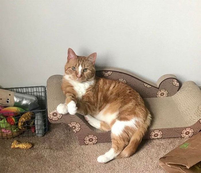 #21 Mi esposo le compró a nuestro gato su propio sofá, y ahora simplemente se sienta allí y juzga a todos