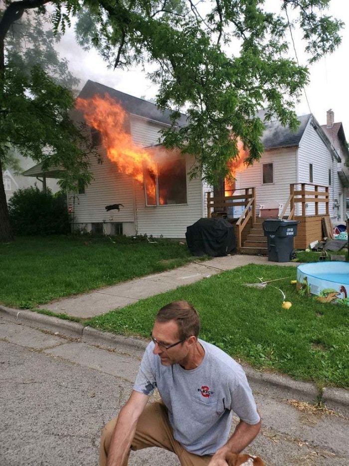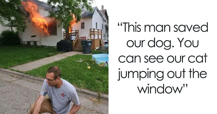 # 27 Este hombre salvó a nuestro perro. Puedes ver a nuestro gato saltando por la ventana