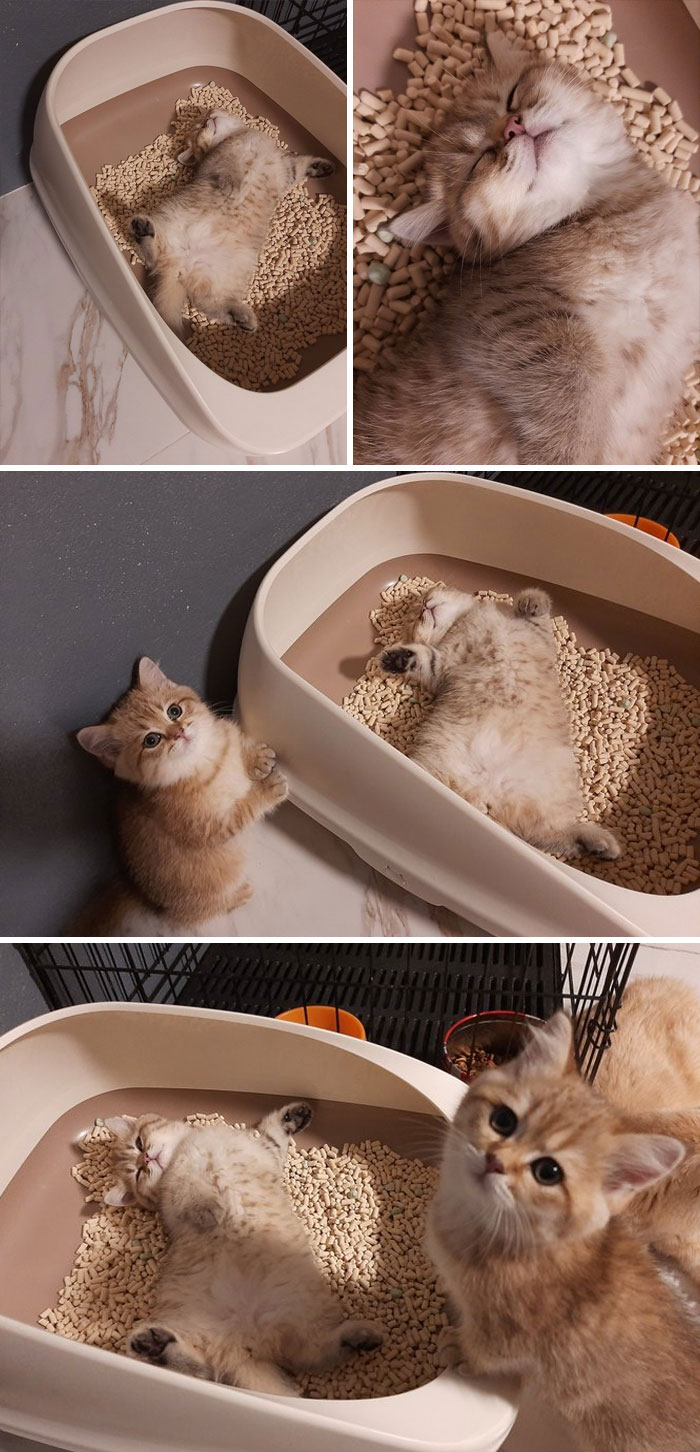 #31 Uno de nuestros gatitos solo duerme en la bañera de muñecas de mi hija…