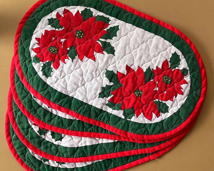 # 20 Cenar con manteles individuales que tenían dibujos de flores de pascua y siempre apegarse a los colores clásicos de rojo, blanco y verde