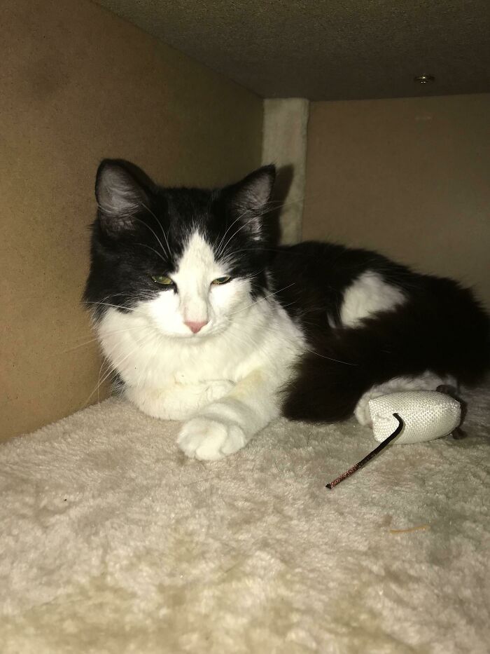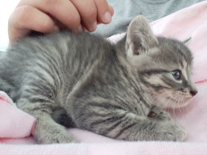 # 3 La encontré buceando en un contenedor de basura esta mañana. Pude encontrar hogares para sus dos hermanas, pero nadie la quería. Parece que ahora tengo un gato