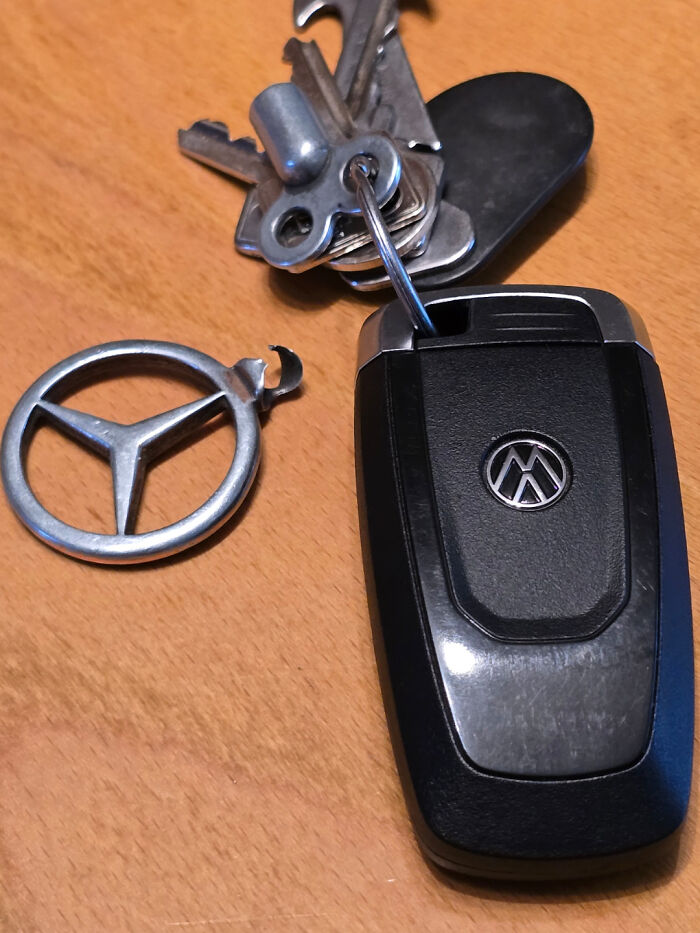 Compré este llavero de Mercedes hace unos 15 años. Hace 1 semana comencé a conducir un Volkswagen y hoy se me rompió el llavero.