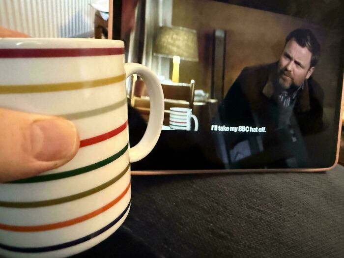 El personaje n.° 35 del programa que estaba viendo tenía la misma taza en la que estaba bebiendo