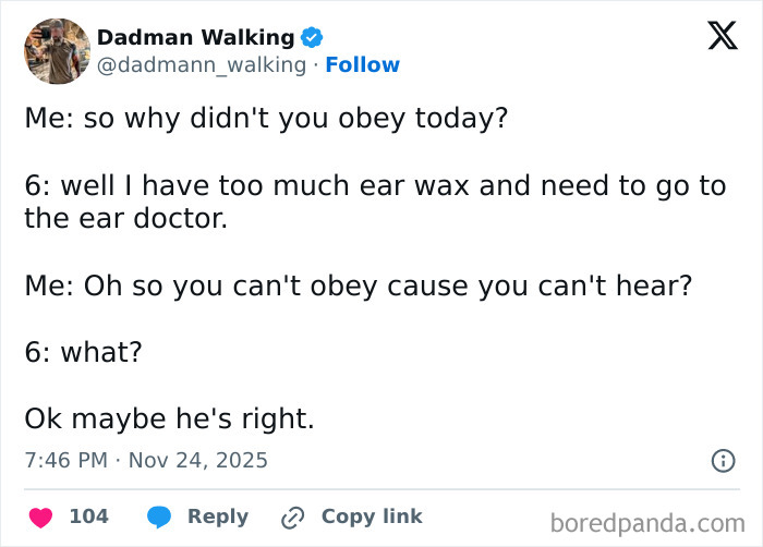 Y luego están los padres que convierten su locura diaria en comedia: comparten tweets, historias y chistes que capturan perfectamente la salvaje realidad de criar hijos. A veces, la risa es realmente el mejor mecanismo de afrontamiento. Ver a otros padres pasar por lo mismo puede ser reconfortante e incluso curativo. Es un recordatorio de que nadie lo tiene completamente resuelto y eso está bien. Y, sinceramente, algunos de estos momentos son demasiado divertidos como para no compartirlos. Páselos a algún padre a quien le vendría bien una sonrisa, o al menos algo de solidaridad.