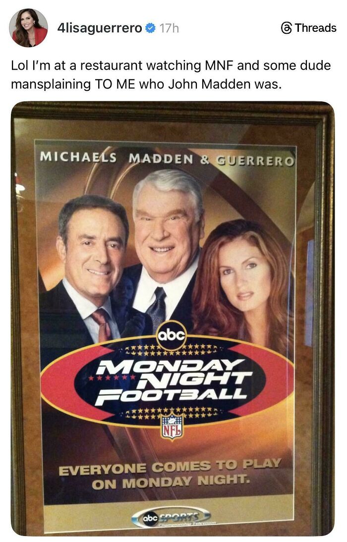 # 51 Lisa Guerrero, quien trabajó como reportera secundaria para Monday Night Football durante una temporada, publicó esto en Threads