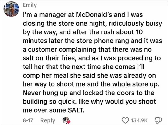 Los usuarios de Tiktok @JaneMoonveil y @pey.attenti0n han aprovechado este problema pidiendo a los trabajadores del servicio que compartan sus peores encuentros de clientes. Las respuestas son una mezcla de horror y comedia, mostrando berrinches sobre cupones vencidos y solicitudes extrañas que nadie podría cumplir.