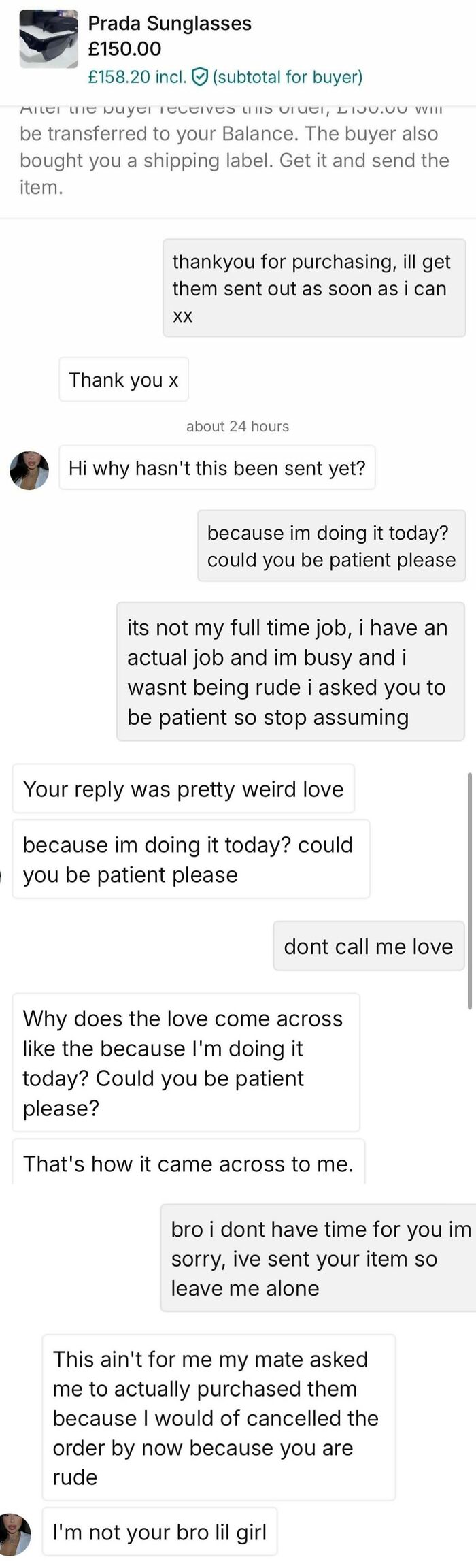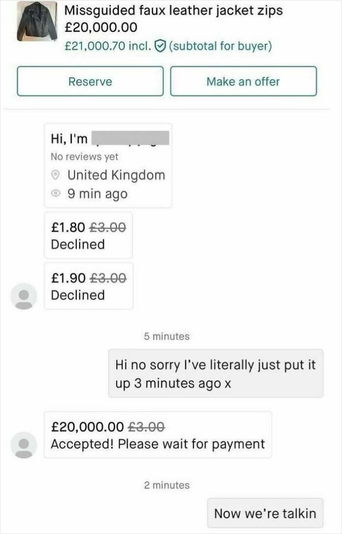 En la práctica, todo lo que involucre a otros humanos está destinado a fracasar. Es por eso que tanto los compradores como los vendedores se encuentran regularmente en intercambios de DM cada vez más desquiciados que harían que el diálogo con Tarantino parezca razonable.