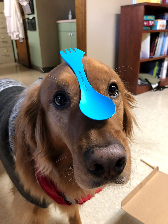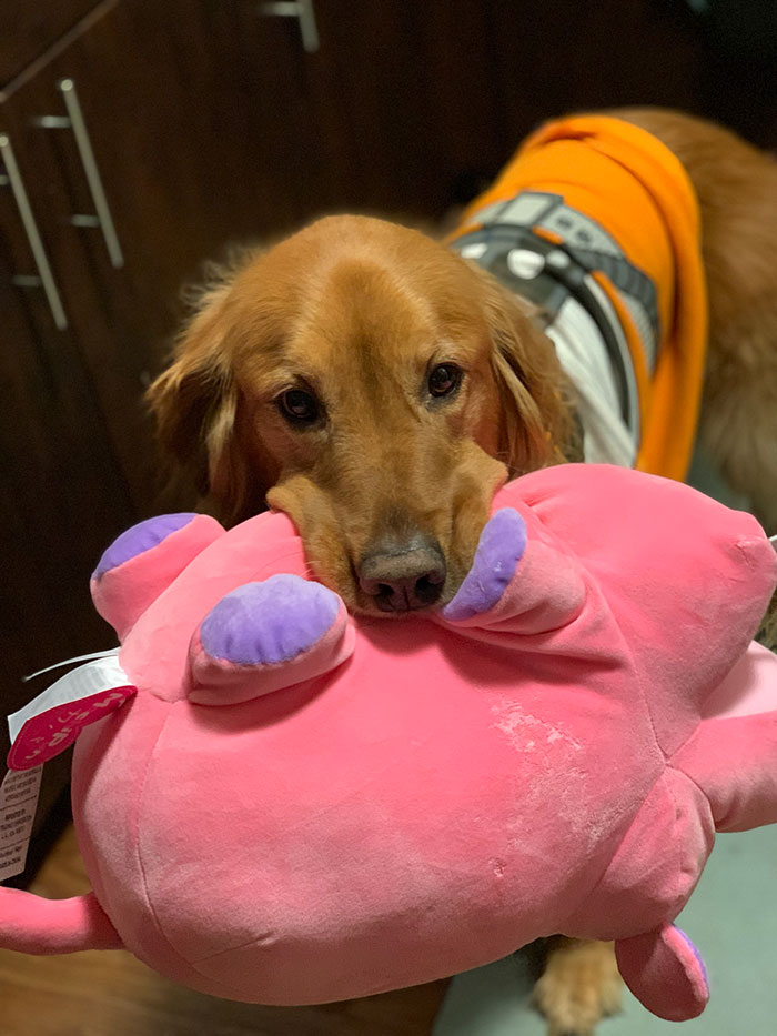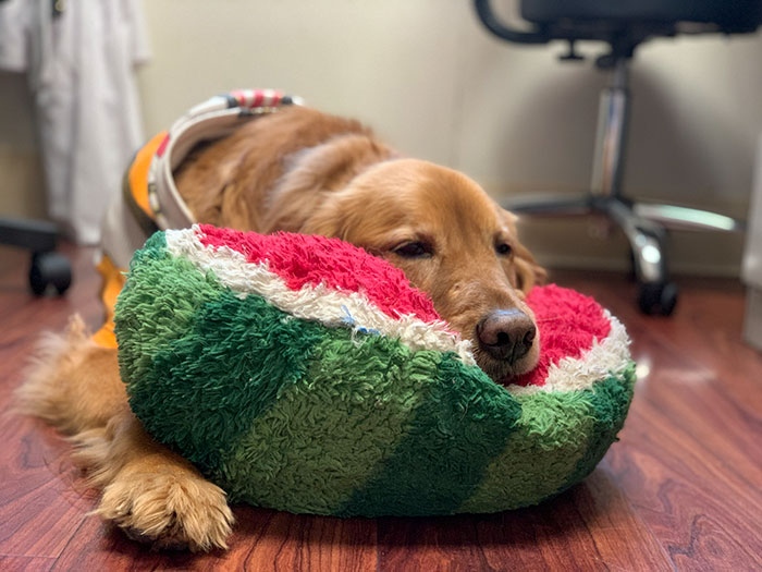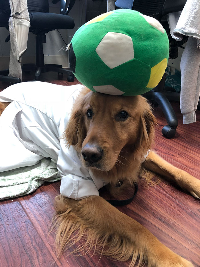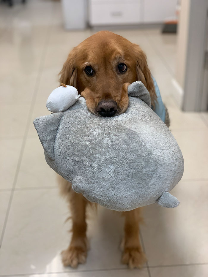 «Poi me ayuda mucho. A menudo viene conmigo a la clínica. De hecho, le encanta ir a trabajar y le gusta saludar al personal de la clínica con su juguete en la sala de descanso. La copadre de Poi trabaja en una empresa que ofrece terapia dirigida para el cáncer canino», nos dijo el propietario.