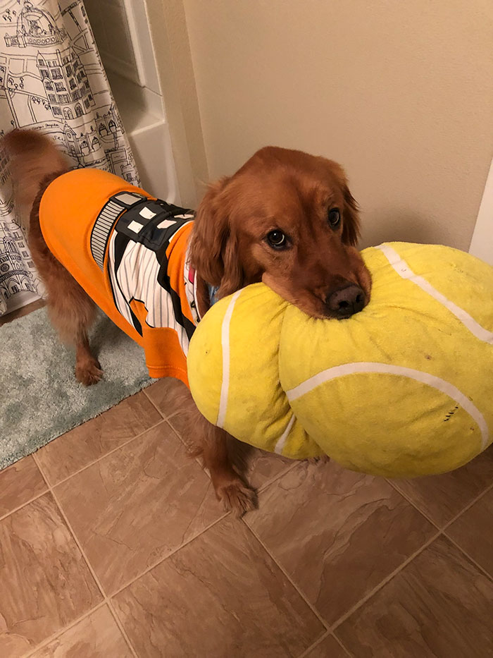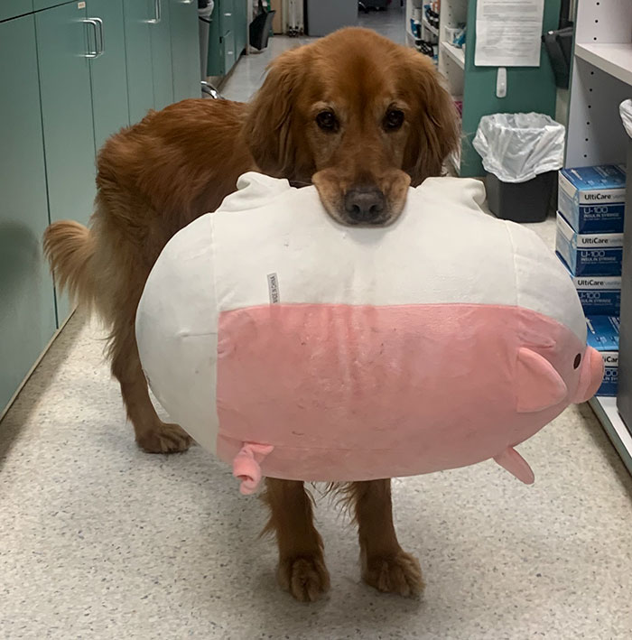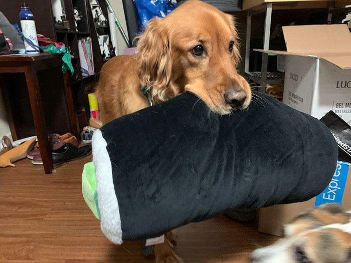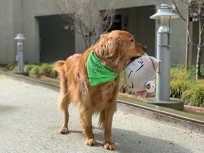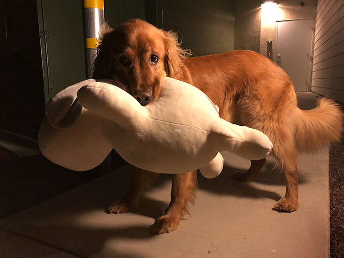 Todos los perros tienen personalidades distintas y, al igual que ocurre con las personas, cada una de estas personalidades es loca y extraña a su manera. Por ejemplo, este encantador golden retriever llamado Poi, que es la abreviatura de Poseidón, nunca sale de su casa sin… ¡agarrar uno de sus juguetes de peluche para llevárselo! Recientemente, su dueño subió algunas de las fotos de Poi a Imgur para mostrar en Internet qué tipo de cosas suele llevar este perro. Puedes encontrar la publicación original aquí. Alerta de spoiler: ¡estas fotos son súper adorables!