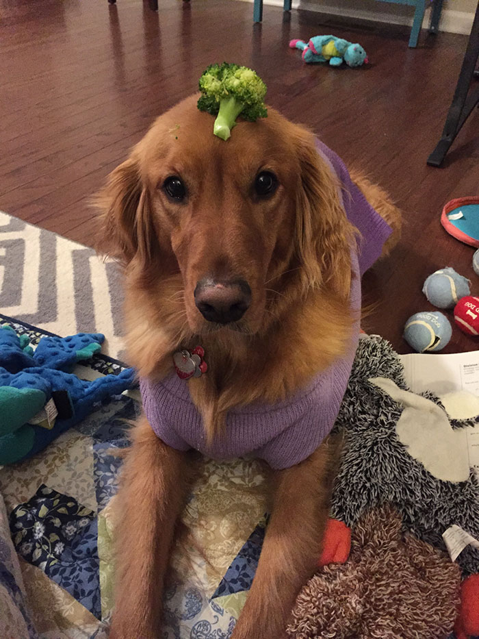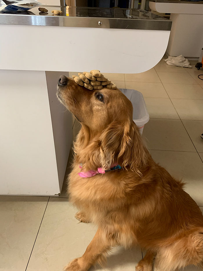 Además, esta dorada también sabe cómo equilibrar cosas en su cabeza, desde peluches hasta otras cosas, como, por ejemplo, limón, brócoli o incluso una cuchara. Qué chica tan talentosa.