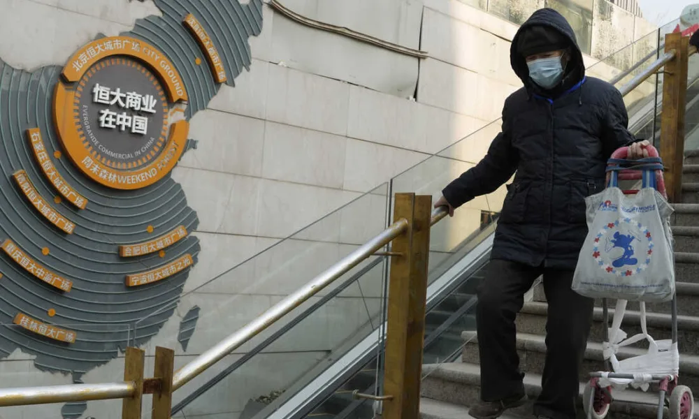 Los residentes caminan a través de un complejo comercial de Evergrande parcialmente cerrado en Beijing, el lunes 29 de enero de 2024. Ng Han Guan/AP escondite...