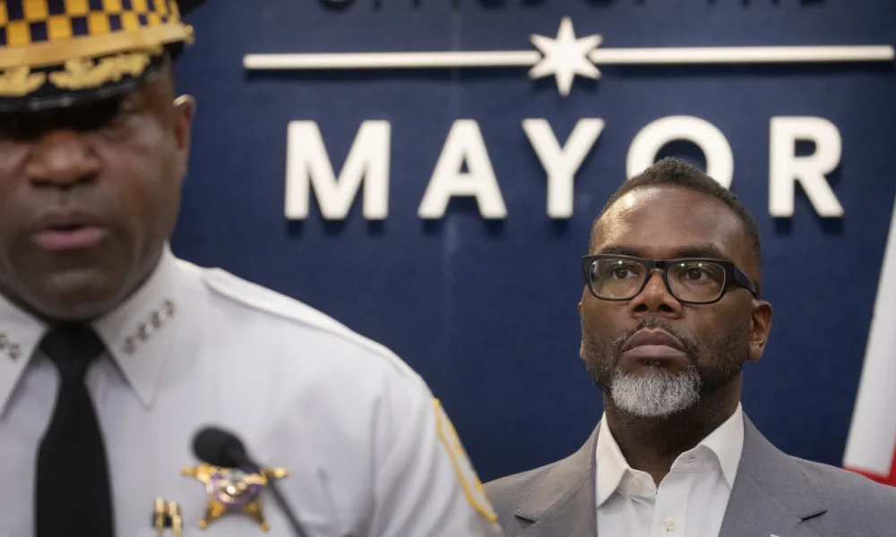 El alcalde de Chicago, Brandon Johnson, asiste a una conferencia de prensa en enero. El viernes, Johnson calificó la amenaza del presidente Trump de enviar la...