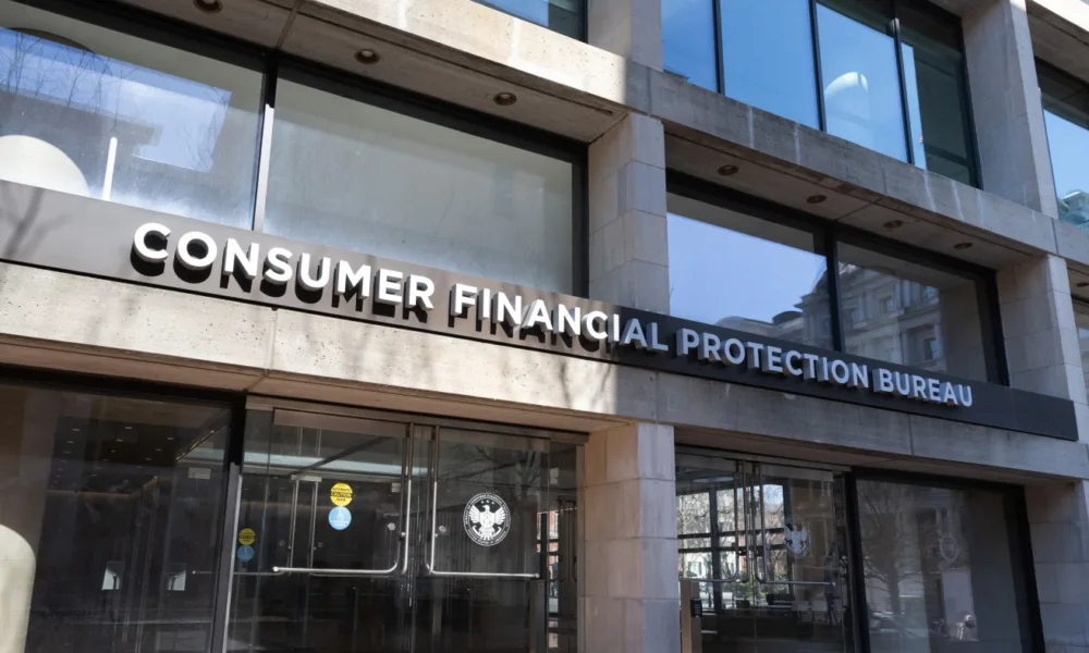 La sede de la Oficina de Protección Financiera del Consumidor en Washington, DC, en febrero. Saul Loeb/AFP a través de Getty Images/AFP escondite alternar Saul Loeb/AFP...