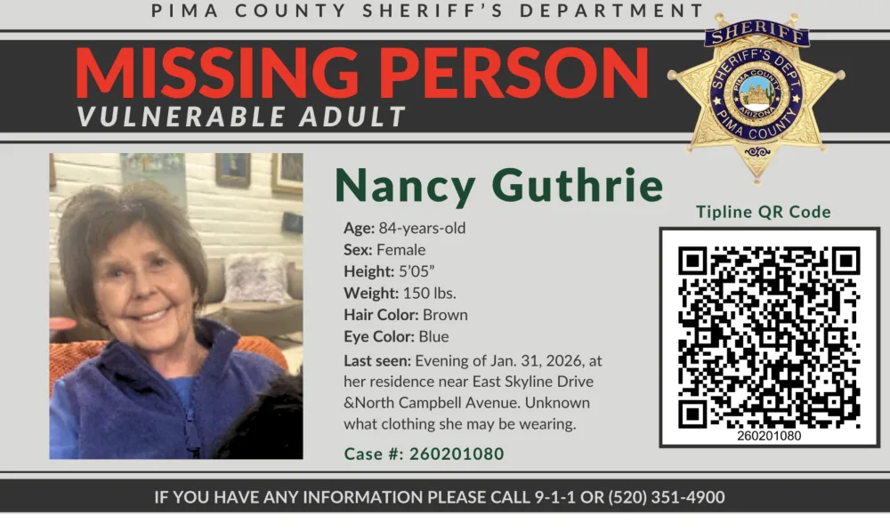 El Departamento del Sheriff del condado de Pima en Arizona emitió una alerta después de que Nancy Guthrie, madre de Hoy La copresentadora del programa Savannah...