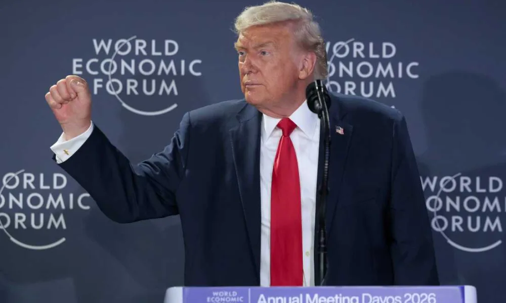 El presidente Trump habla durante una recepción para líderes empresariales en la Reunión Anual del Foro Económico Mundial en Davos, Suiza, el miércoles. Chip Somodevilla/Getty Images...