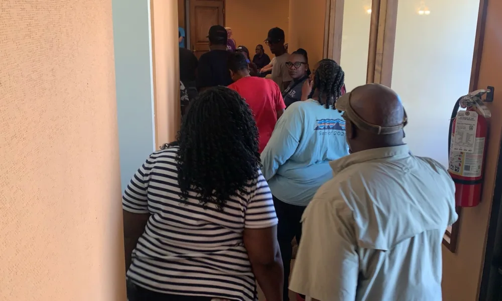Las familias de las víctimas del tiroteo se reúnen con las autoridades en el Ayuntamiento de Leland el sábado 11 de octubre de 2025 en Leland,...