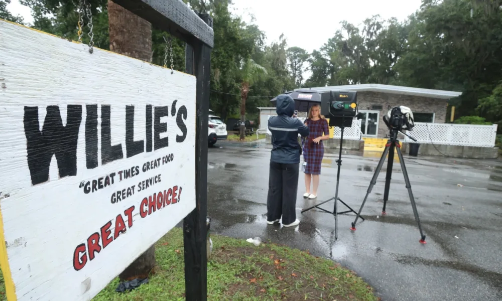 Un reportero trabaja afuera de Willie’s Bar and Grill en St Helena Island, Carolina del Sur, después de que ocurriera un tiroteo la madrugada del domingo...