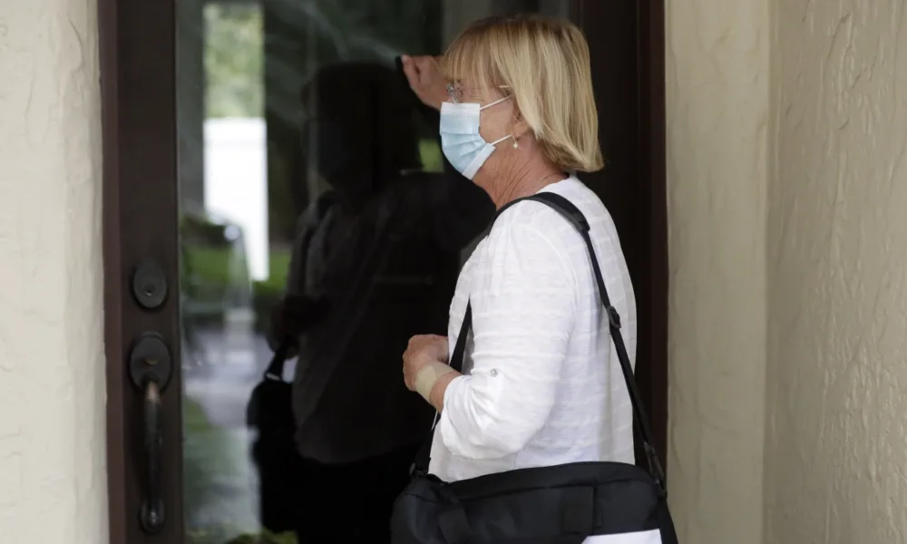Un trabajador de la oficina del censo llama a la puerta de una casa en Winter Park, Florida, en 2020. John Raoux/AP escondite alternar John Raoux/AP...