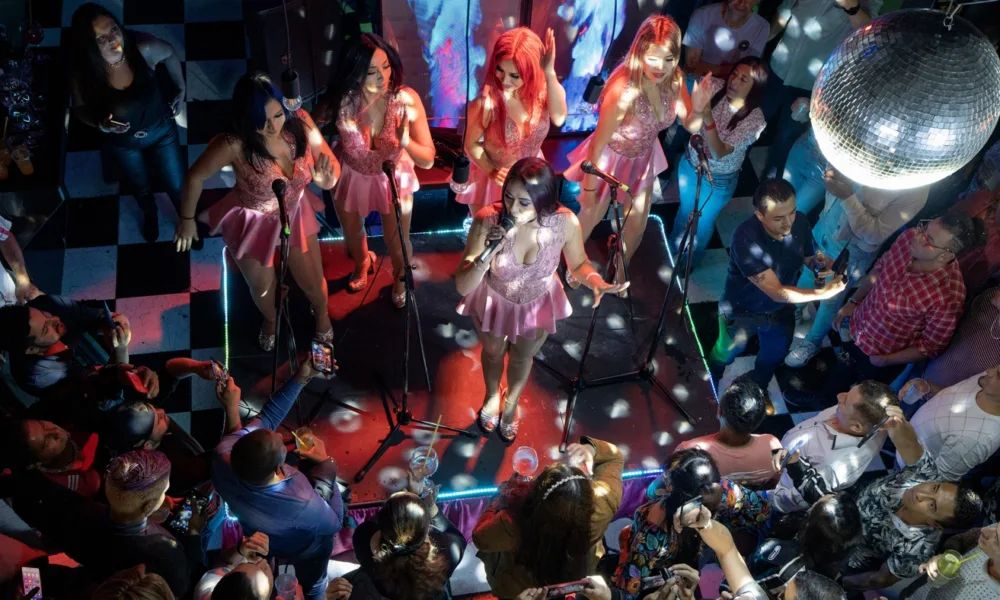 El grupo Tecnocumbia Tierra Canela actúa en el Mapogo Club, un bar LGBTQ en Quito, Ecuador, el 9 de diciembre de 2023. El grupo femenino, un...