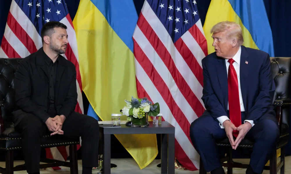 El presidente Trump se reúne con el presidente ucraniano Volodymyr Zelenskyy al margen de la Asamblea General de la ONU el 23 de septiembre de 2025....