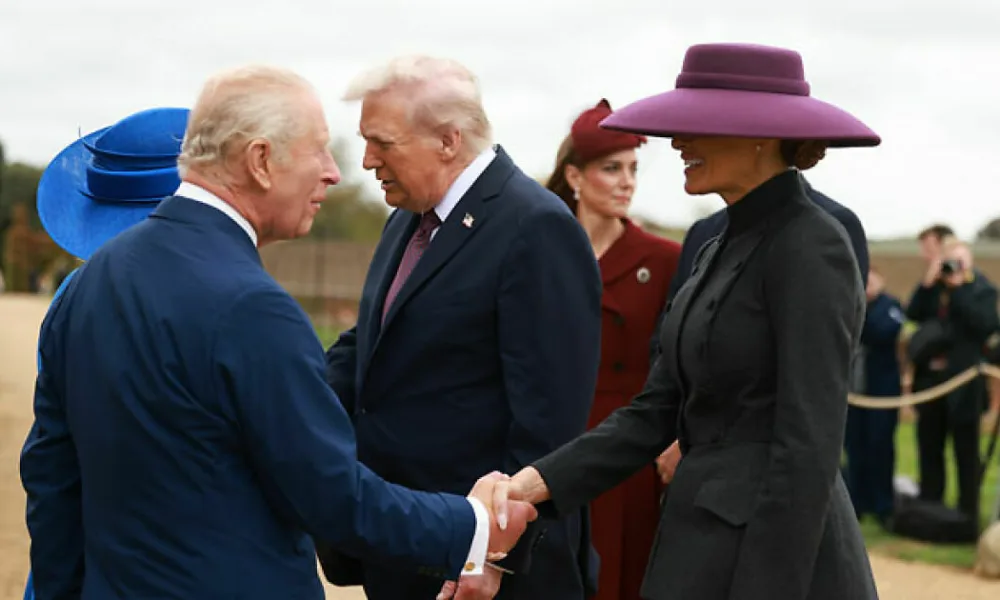 Rey Charles y Reina camilla Oficialmente bienvenido Presidente Donald Trump y Primera Dama Melania Trump A su segunda visita estatal al Reino Unido ayer (17 de...
