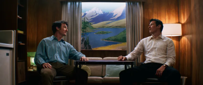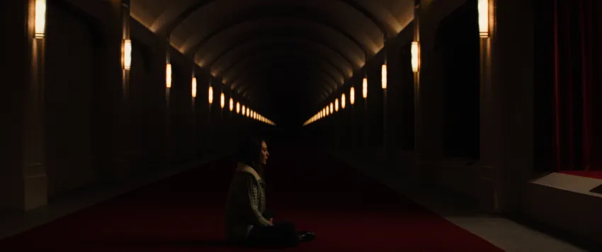 En ninguna parte esa restricción es más efectiva que en el túnel del archivo. La secuencia es más oscura que la mayor parte de la película, pero no amenazante. Tomiak describió cómo dio forma a las siluetas de Joan y Larry mientras se tomaban de la mano, bajando la imagen para que las bombillas cálidas pudieran brillar en la oscuridad. «No añadió miedo», dijo. «Agregó calidez… como una cualidad de abrazo». La oscuridad no está ahí para oscurecer, está ahí para enfocar.