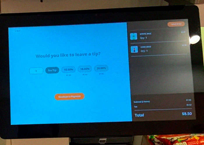 La opción de propina cuando pago en esas computadoras en la caja.